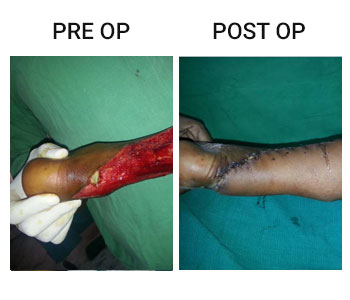 The hospital has a streamlined and experienced plastic surgery team to manage high velocity trauma with neurovascular injury, tendon injury and skin loss. Primary SSG and Flap cover is routinely done in this hospital for deserving patients and emergency tendon repair and neurovascular injuries are managed by plastic and vascular surgeons.